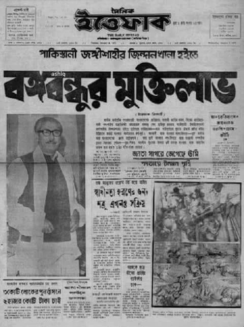 | দৈনিক ইত্তেফাক-এ বঙ্গবন্ধুর মুক্তি সংবাদ |