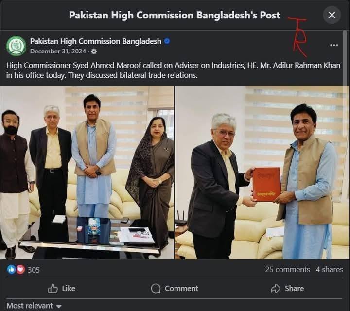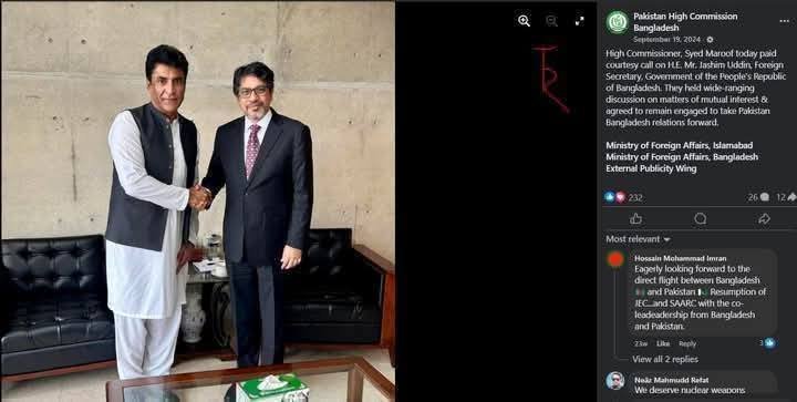 কয়েক মাসের মধ্যে বাংলাদেশে নিযুক্ত পাকিস্তানের হাই কমিশনার সৈয়দ আহম্মেদ মারুফ