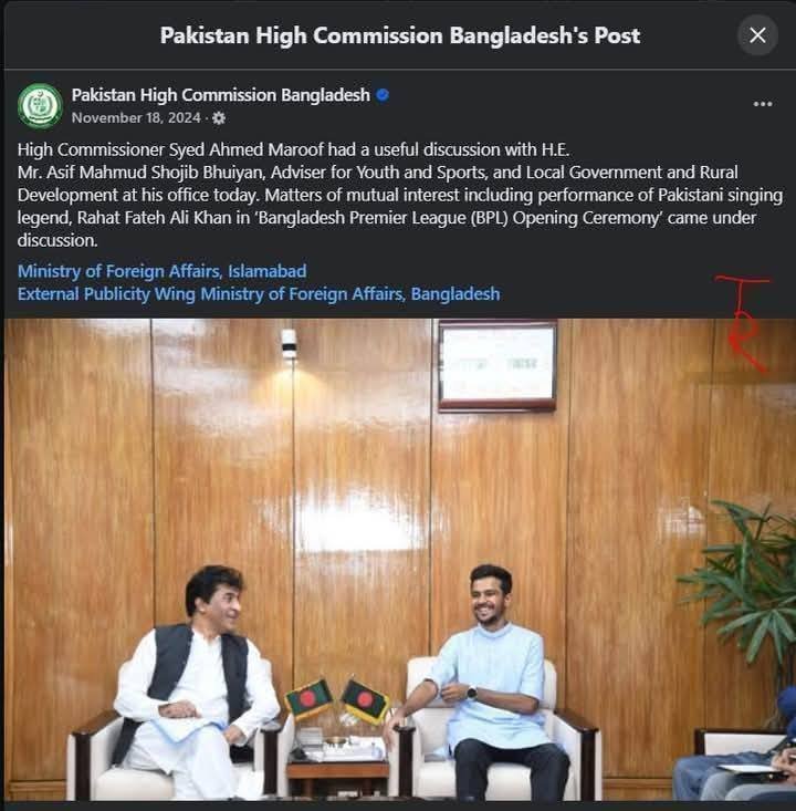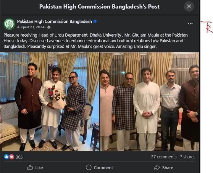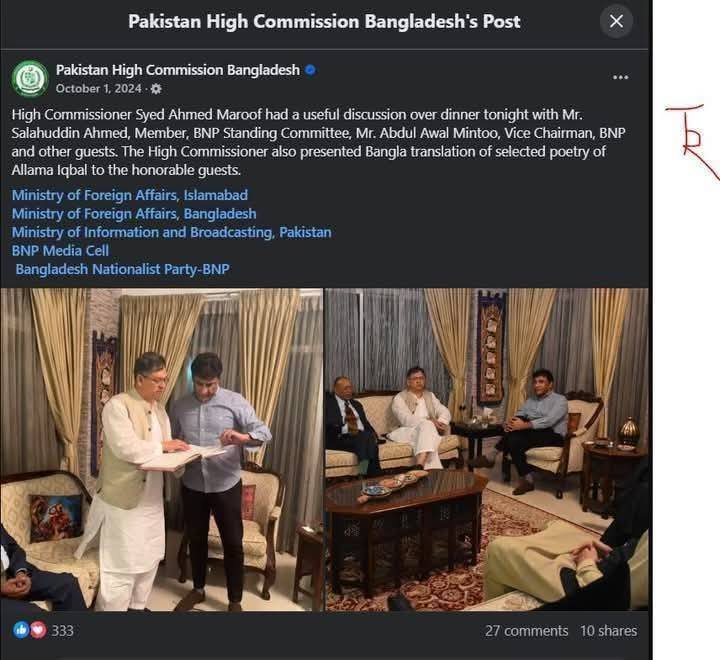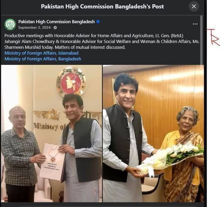 ২৪ ফেব্রুয়ারি পাকিস্তা্নের হাইকমিশনার তিন সদস্যের দল নিয়ে