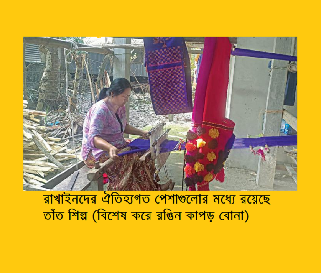 রাখাইন নারীরা তাঁতশিল্পে বিশেষ দক্ষ, এবং তাদের তৈরি কাপড় অত্যন্ত নান্দনিক ও জনপ্রিয়।