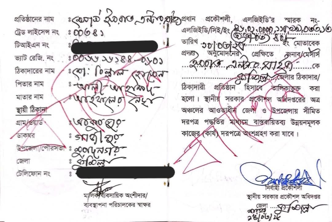 গতকাল রাত ৯ টার দিকে একজন সাংবাদিক কল দিয়ে আমার বাবার নামে ইস্যুকৃত ঠিকাদারি লাইসেন্সের বিষয়ে জানতে চাইলেন। বাবার সাথে কথা বলে নিশ্চিত হলাম তিনি জেলা পর্যায়ের (জেলা নির্বাহী ইঞ্জিনিয়ার এর কার্যালয় থেকে ইস্যুকৃত) একটি লাইসেন্স করেছেন। বিষয়টি উক্ত সাংবাদিককে নিশ্চিত করলাম। তিনি পোস্ট করলেন, নিউজও হলো গণমাধ্যমে। নানা আলোচনা-সমালোচনা হচ্ছে তাই ব্যাখ্যা দেয়ার প্রয়োজনবোধ করলাম।